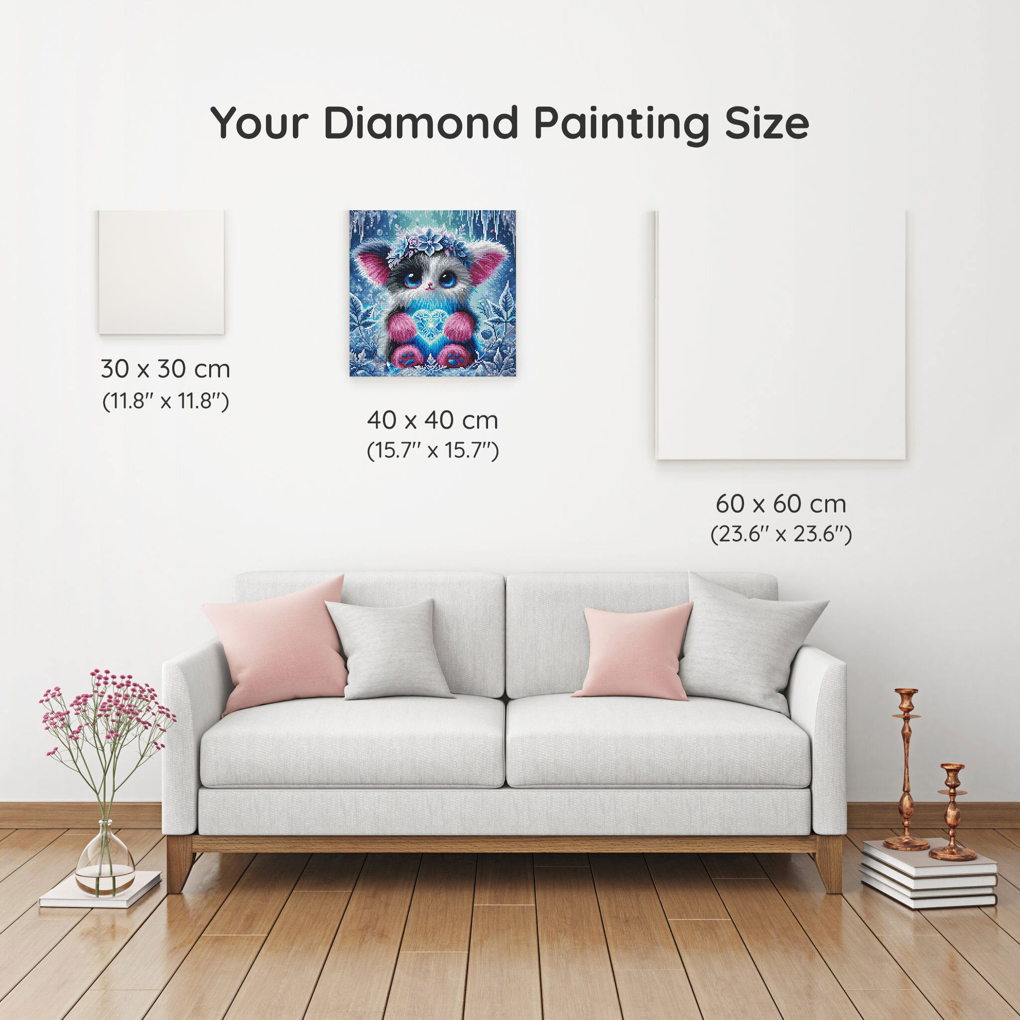 Our canvas dimensions are approximate and may vary by 1–3 cm due to manufacturing processes. This slight variation does not impact the quality or completeness of your diamond painting project.
