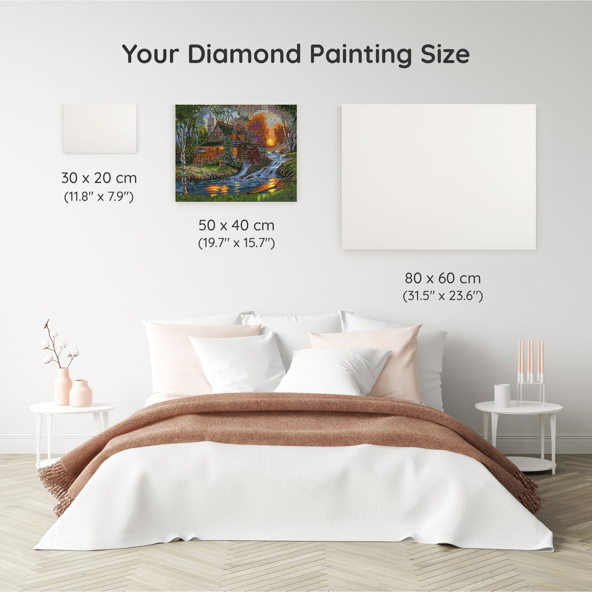 Our canvas dimensions are approximate and may vary by 1–3 cm due to manufacturing processes. This slight variation does not impact the quality or completeness of your diamond painting project.