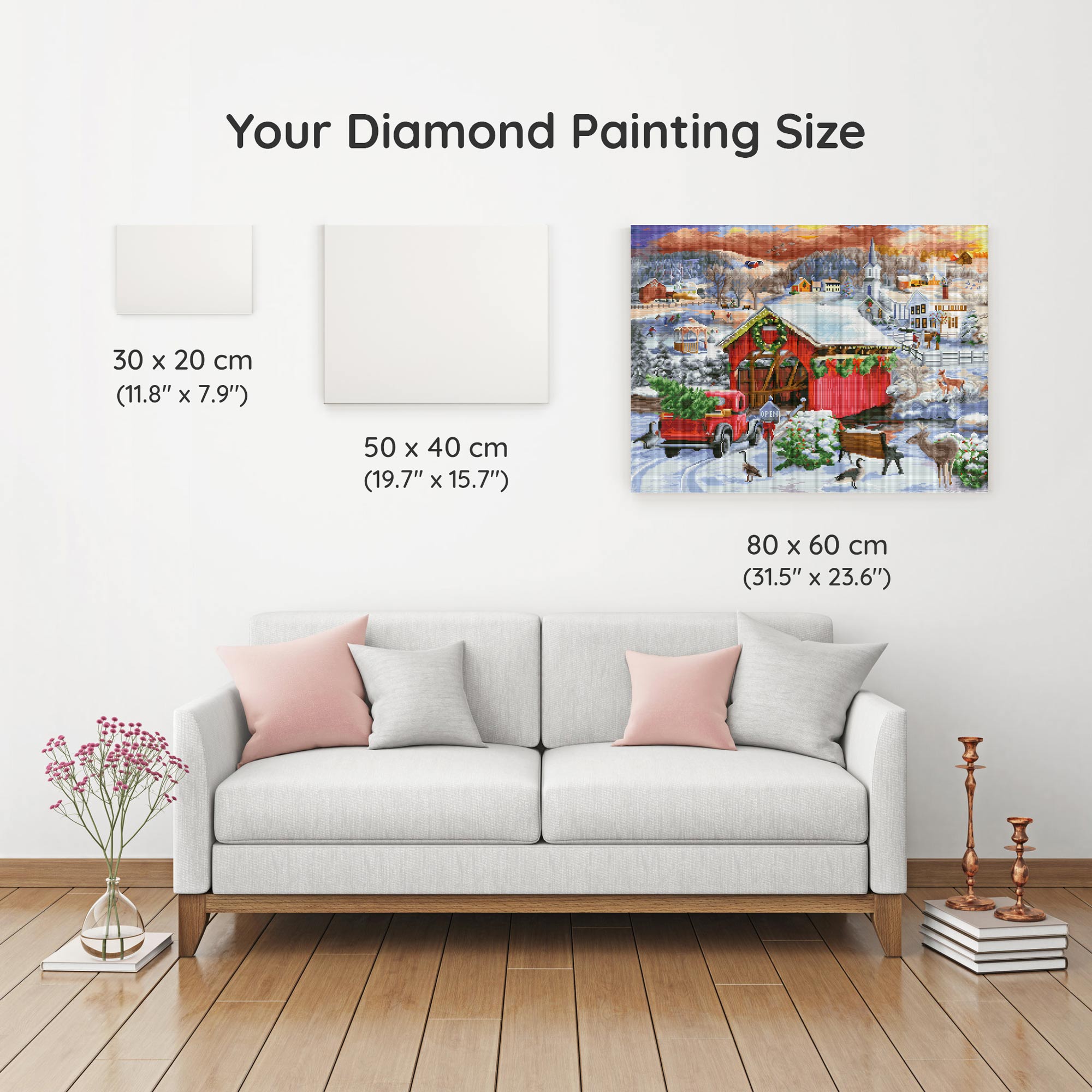 Our canvas dimensions are approximate and may vary by 1–3 cm due to manufacturing processes. This slight variation does not impact the quality or completeness of your diamond painting project.