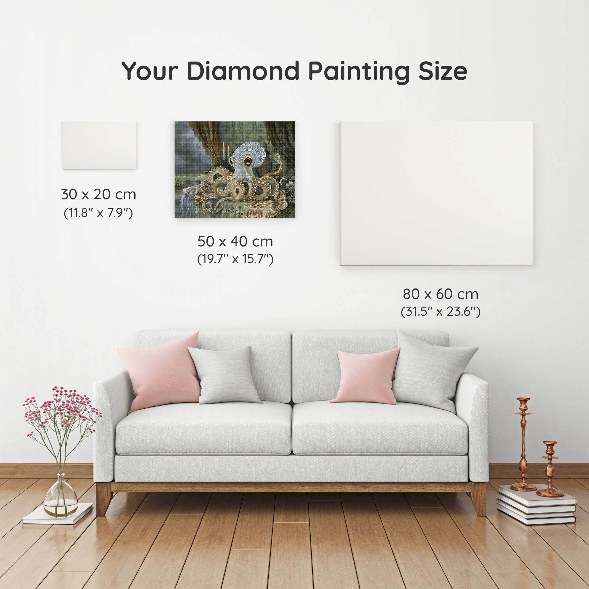 Our canvas dimensions are approximate and may vary by 1–3 cm due to manufacturing processes. This slight variation does not impact the quality or completeness of your diamond painting project.