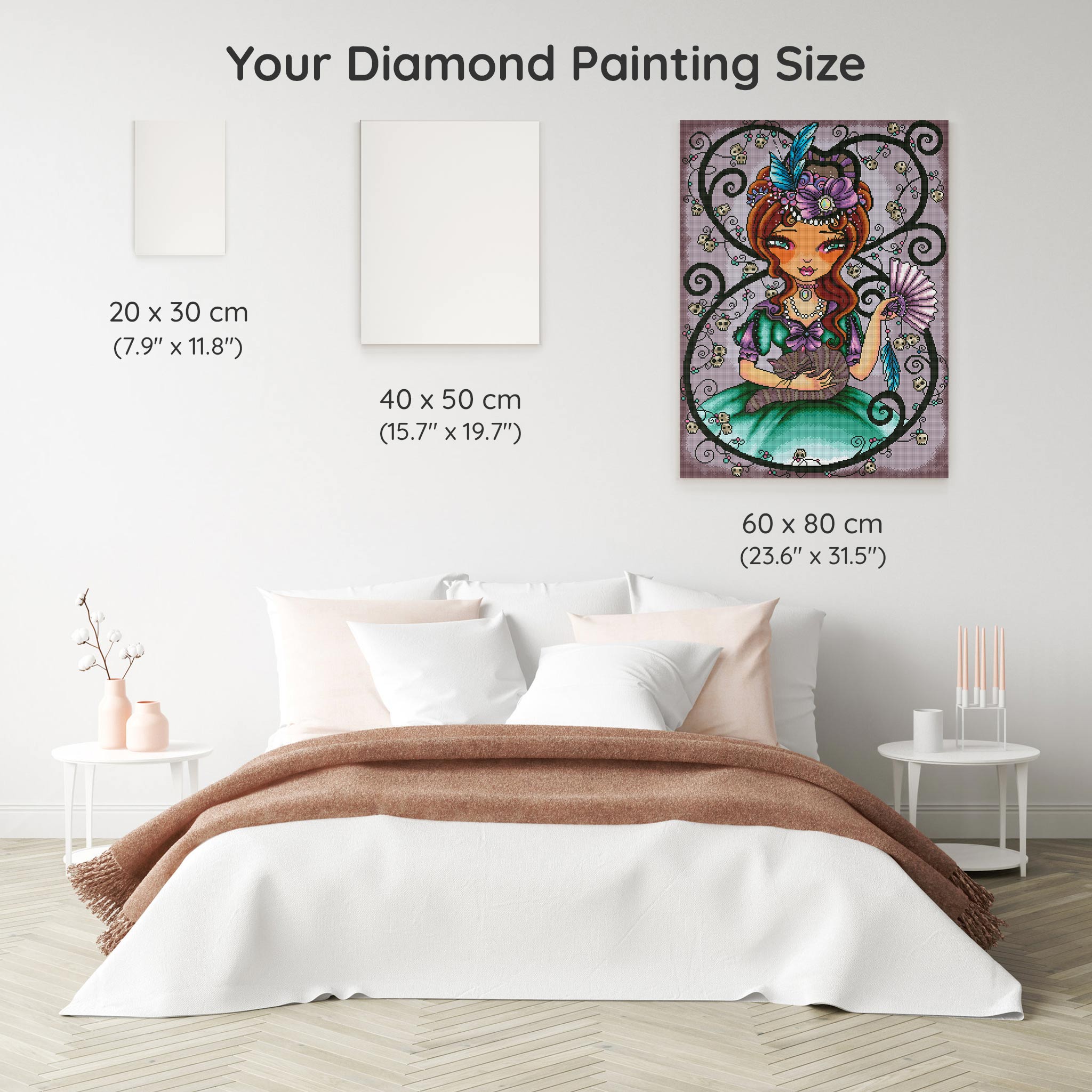 Our canvas dimensions are approximate and may vary by 1–3 cm due to manufacturing processes. This slight variation does not impact the quality or completeness of your diamond painting project.
