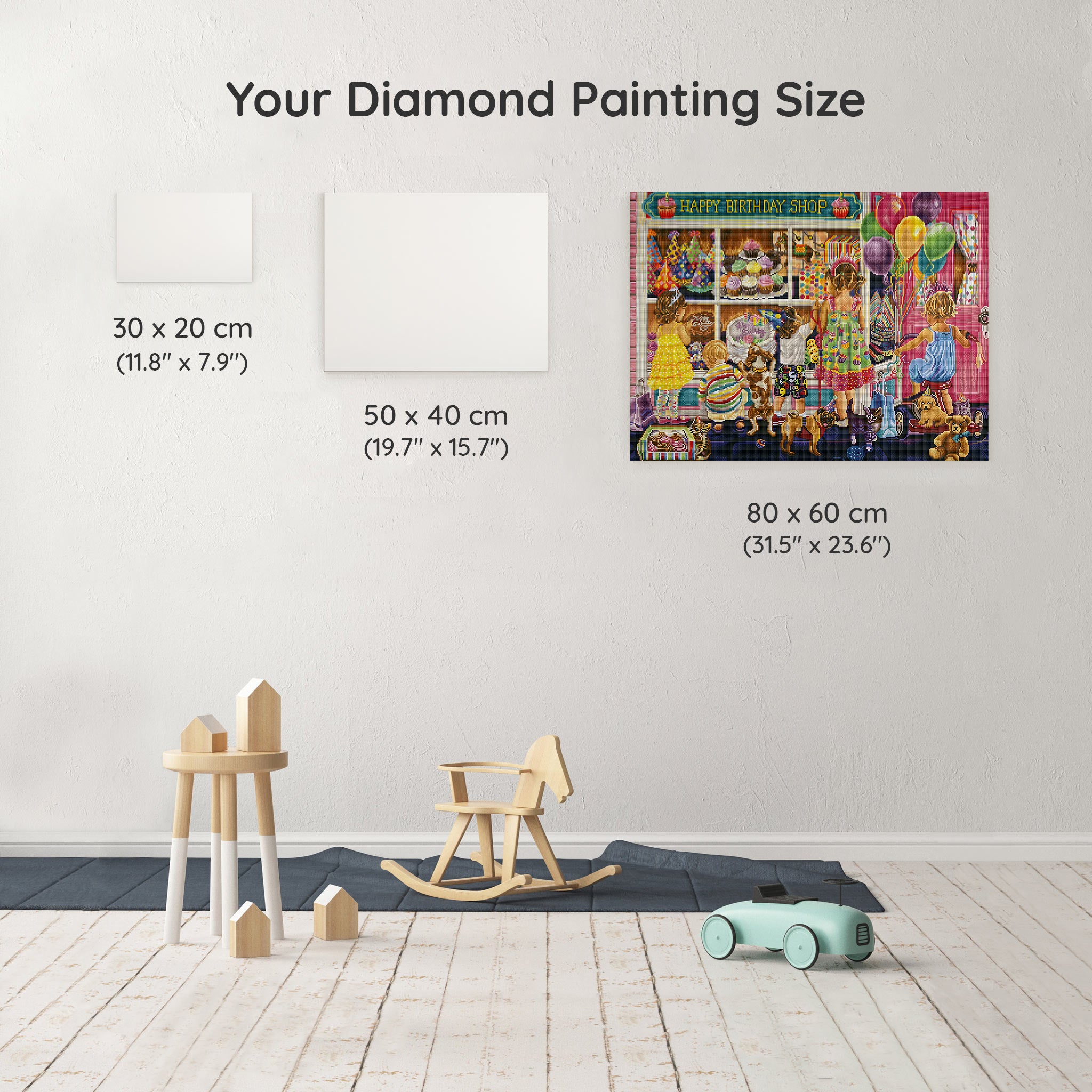 Our canvas dimensions are approximate and may vary by 1–3 cm due to manufacturing processes. This slight variation does not impact the quality or completeness of your diamond painting project.