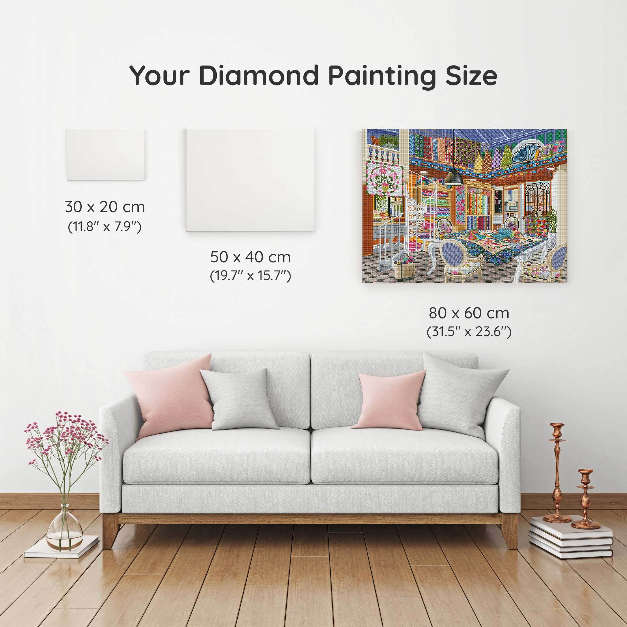Our canvas dimensions are approximate and may vary by 1–3 cm due to manufacturing processes. This slight variation does not impact the quality or completeness of your diamond painting project.