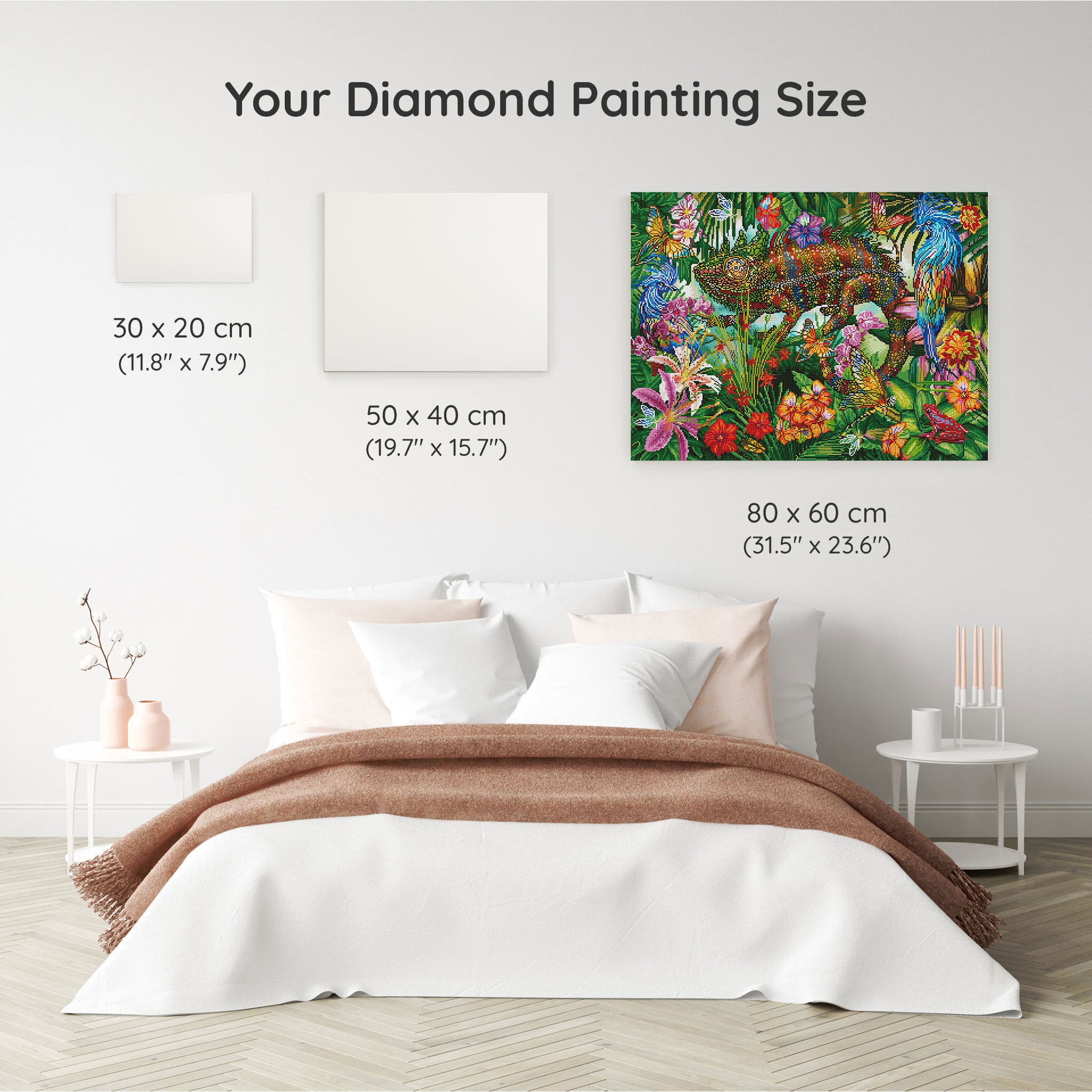 Our canvas dimensions are approximate and may vary by 1–3 cm due to manufacturing processes. This slight variation does not impact the quality or completeness of your diamond painting project.