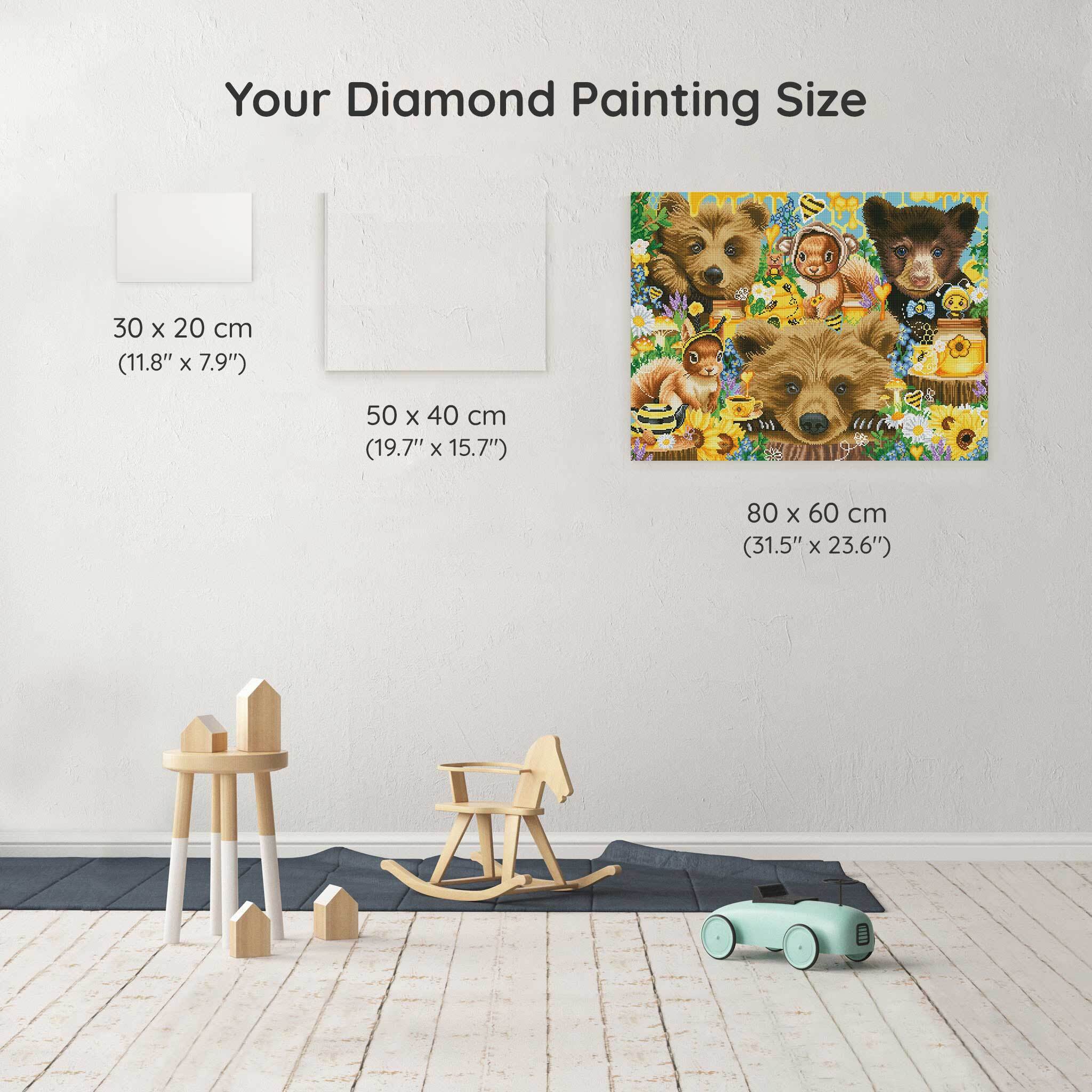 Our canvas dimensions are approximate and may vary by 1–3 cm due to manufacturing processes. This slight variation does not impact the quality or completeness of your diamond painting project.