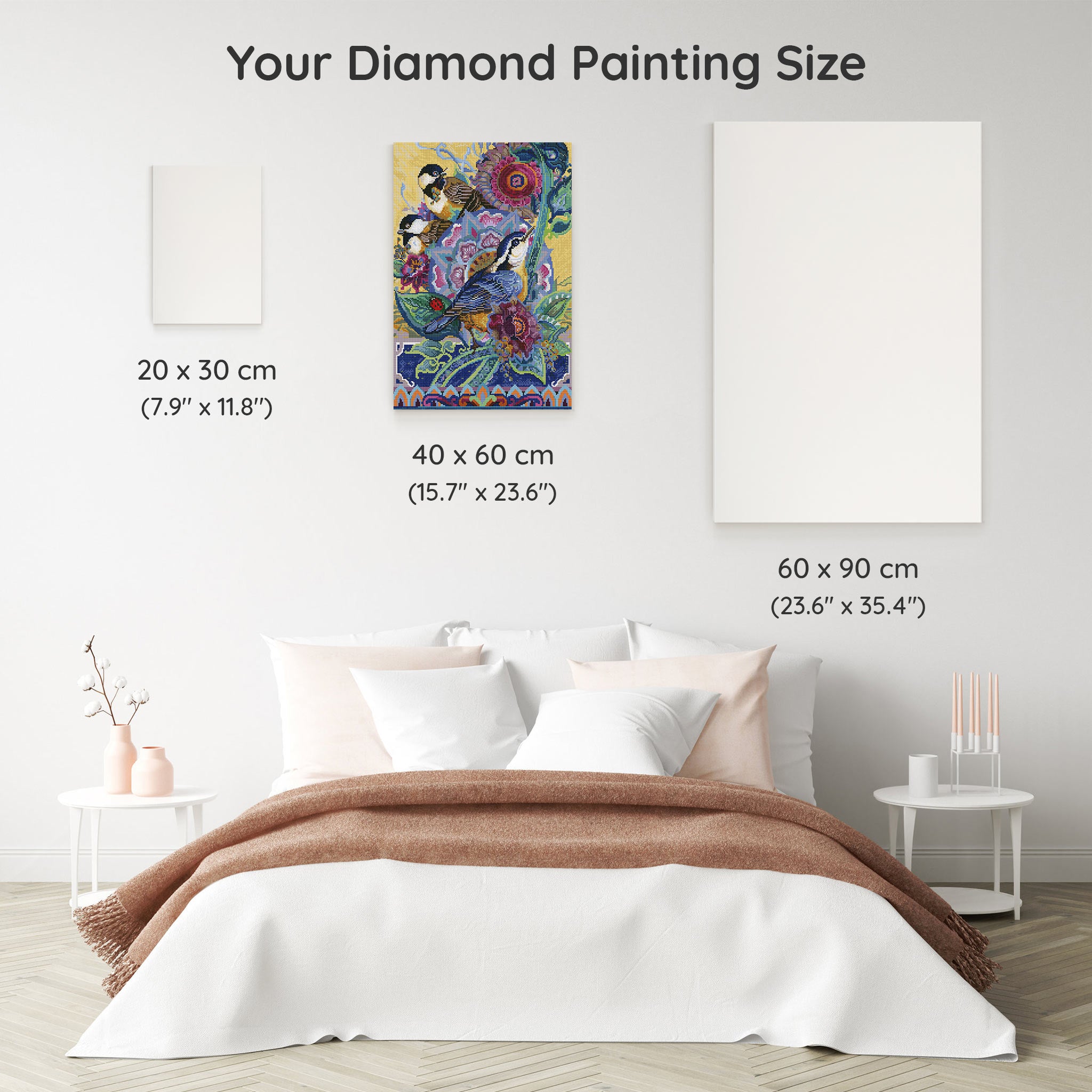 Our canvas dimensions are approximate and may vary by 1–3 cm due to manufacturing processes. This slight variation does not impact the quality or completeness of your diamond painting project.