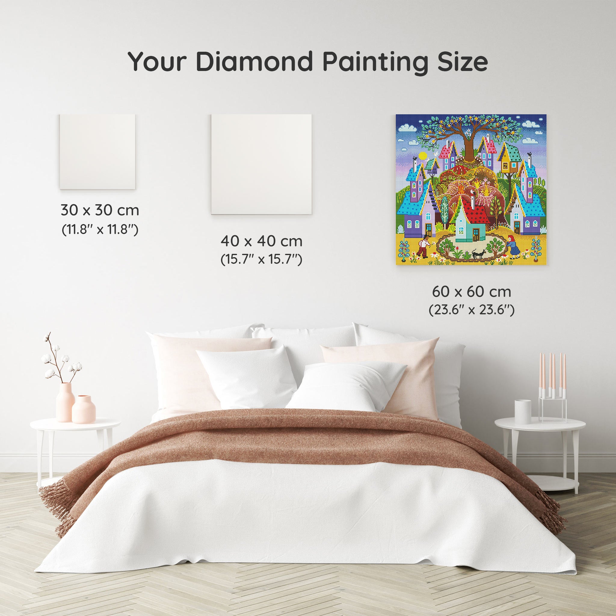 Our canvas dimensions are approximate and may vary by 1–3 cm due to manufacturing processes. This slight variation does not impact the quality or completeness of your diamond painting project.