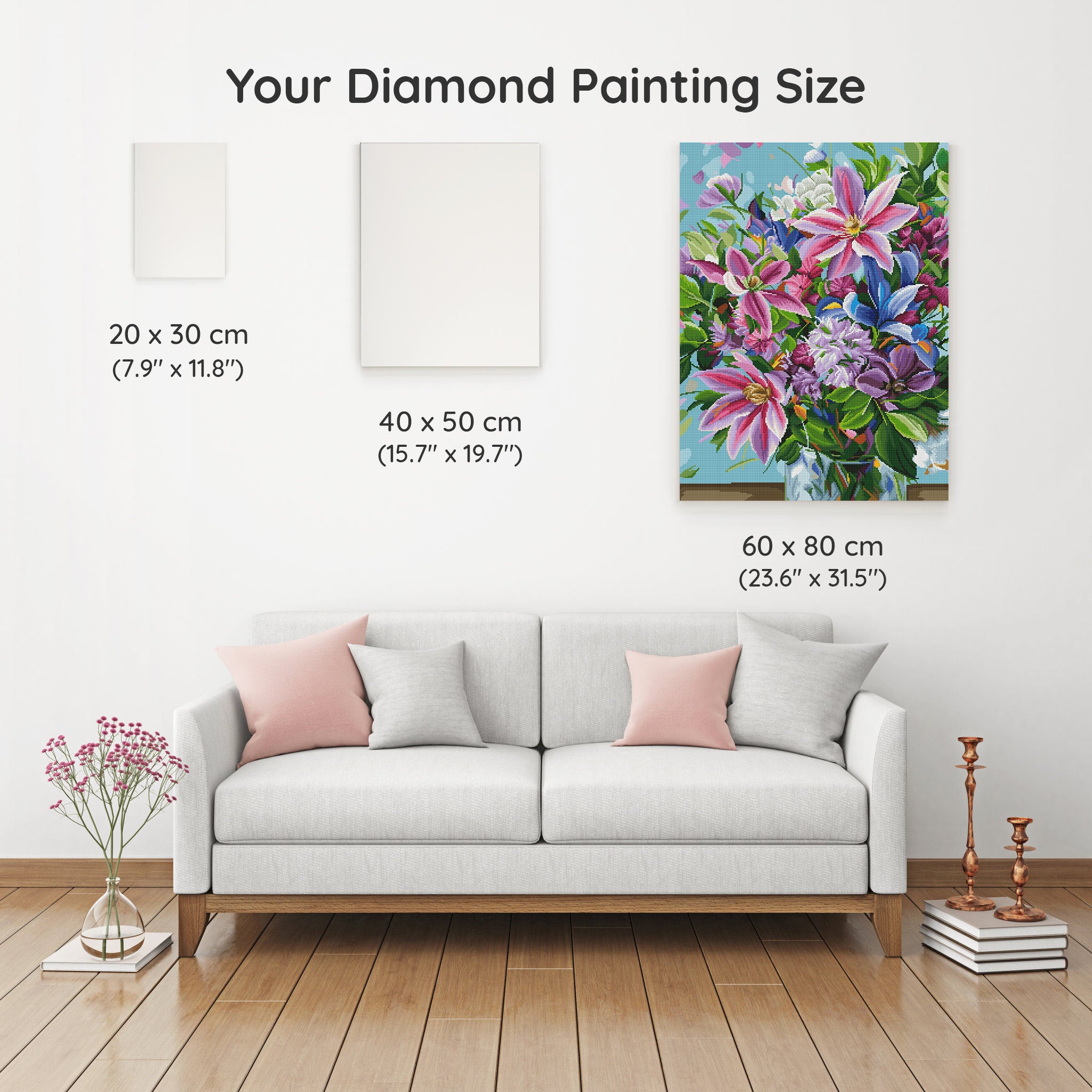 Our canvas dimensions are approximate and may vary by 1–3 cm due to manufacturing processes. This slight variation does not impact the quality or completeness of your diamond painting project.