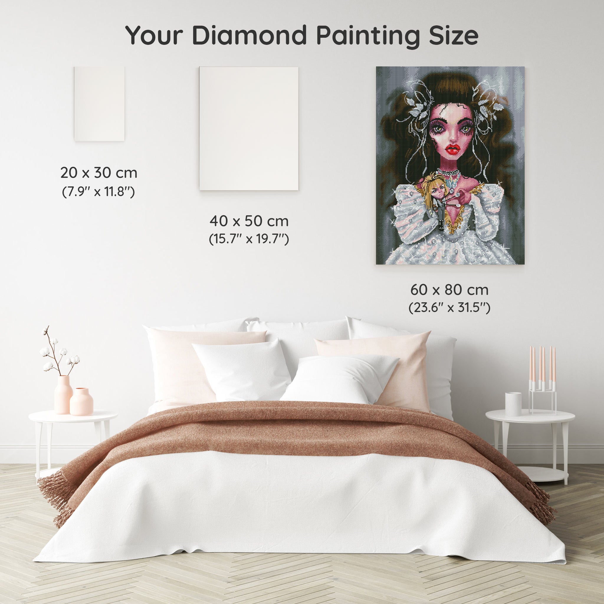 Our canvas dimensions are approximate and may vary by 1–3 cm due to manufacturing processes. This slight variation does not impact the quality or completeness of your diamond painting project.