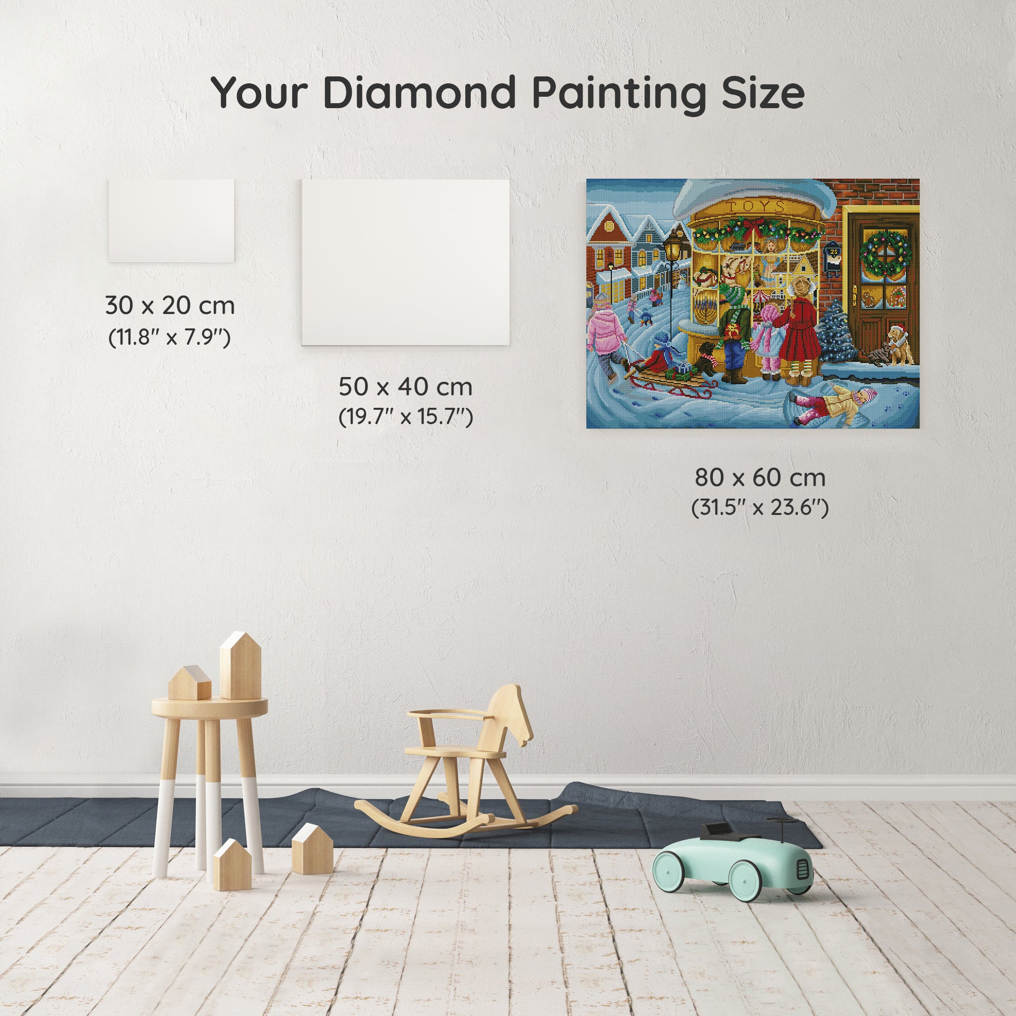 Our canvas dimensions are approximate and may vary by 1–3 cm due to manufacturing processes. This slight variation does not impact the quality or completeness of your diamond painting project.