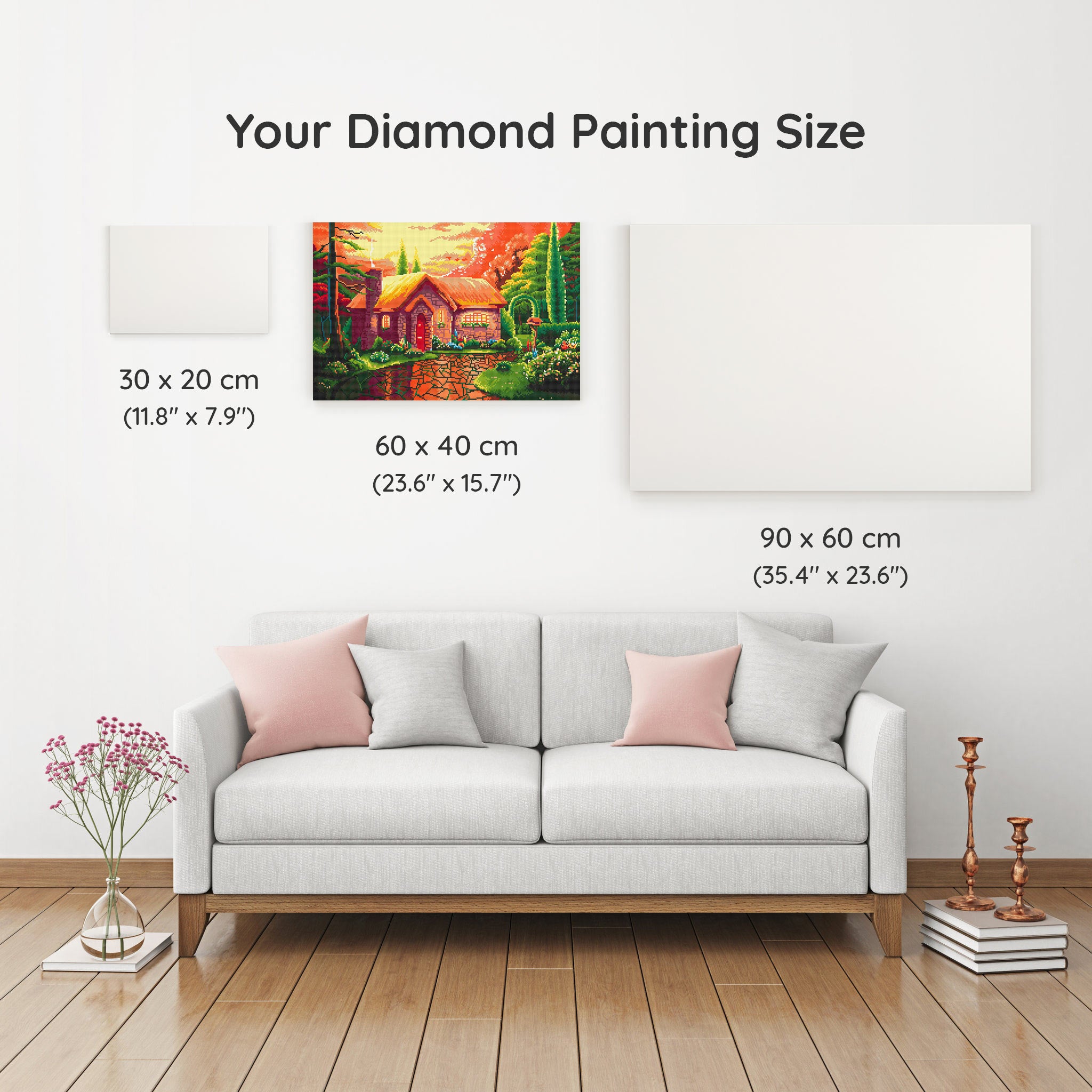 Our canvas dimensions are approximate and may vary by 1–3 cm due to manufacturing processes. This slight variation does not impact the quality or completeness of your diamond painting project.