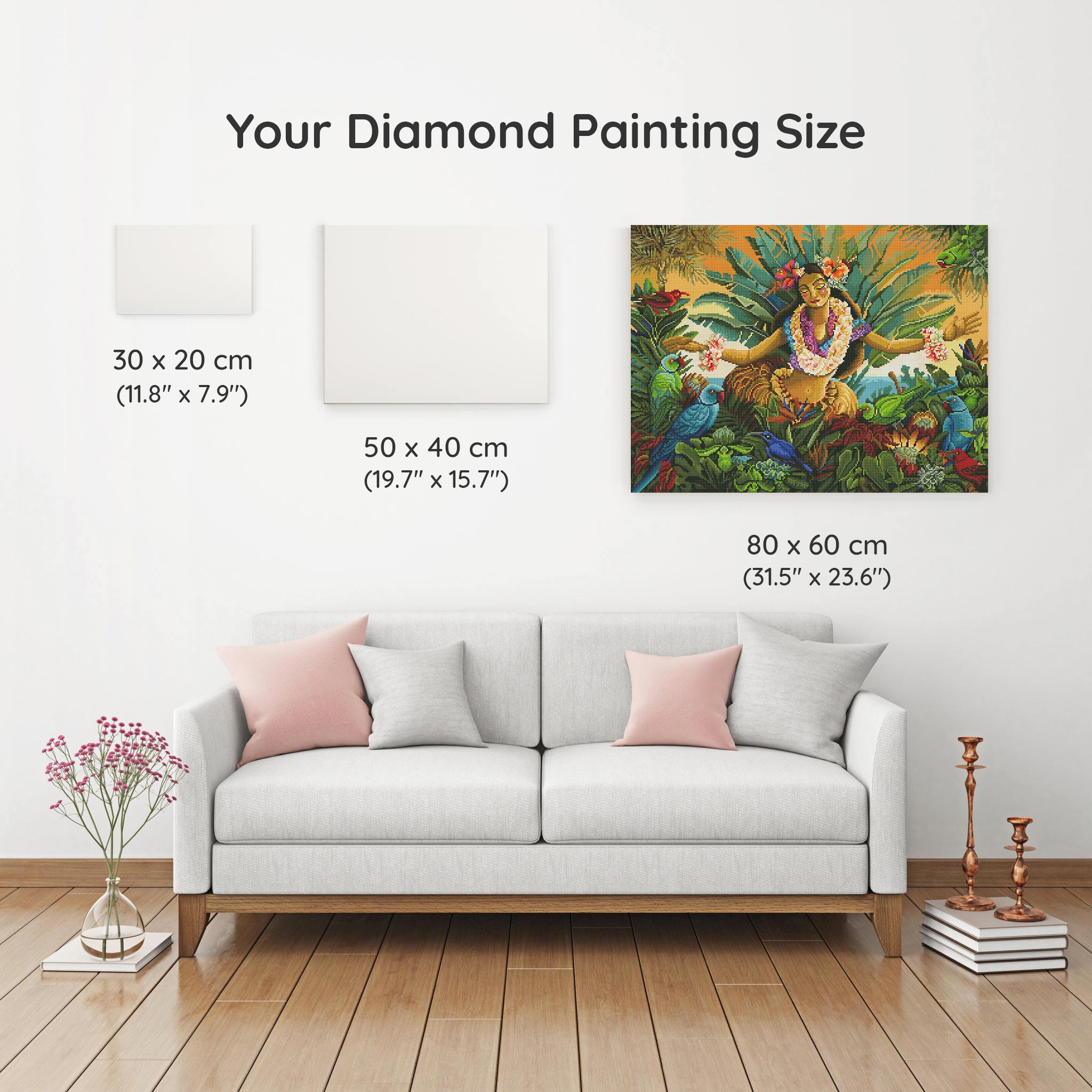 Our canvas dimensions are approximate and may vary by 1–3 cm due to manufacturing processes. This slight variation does not impact the quality or completeness of your diamond painting project.