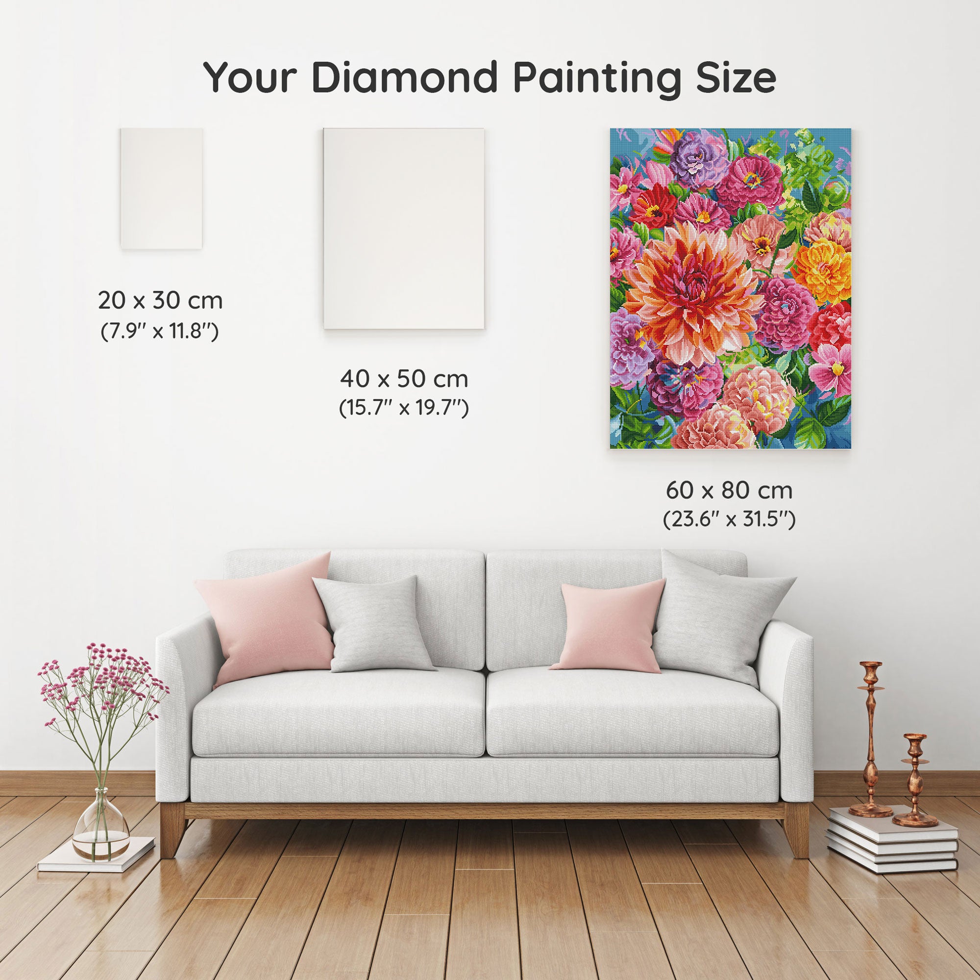 Our canvas dimensions are approximate and may vary by 1–3 cm due to manufacturing processes. This slight variation does not impact the quality or completeness of your diamond painting project.