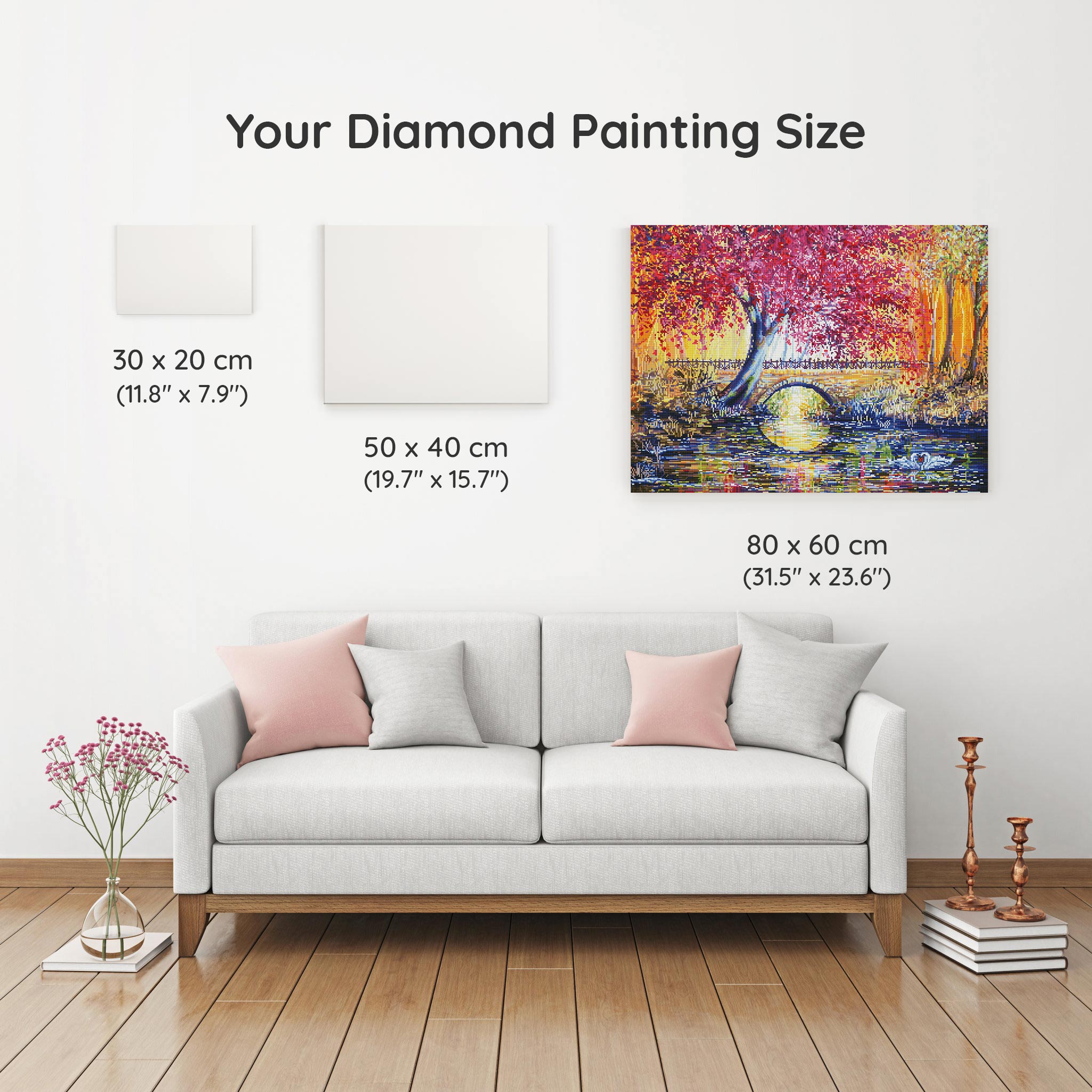 Our canvas dimensions are approximate and may vary by 1–3 cm due to manufacturing processes. This slight variation does not impact the quality or completeness of your diamond painting project.