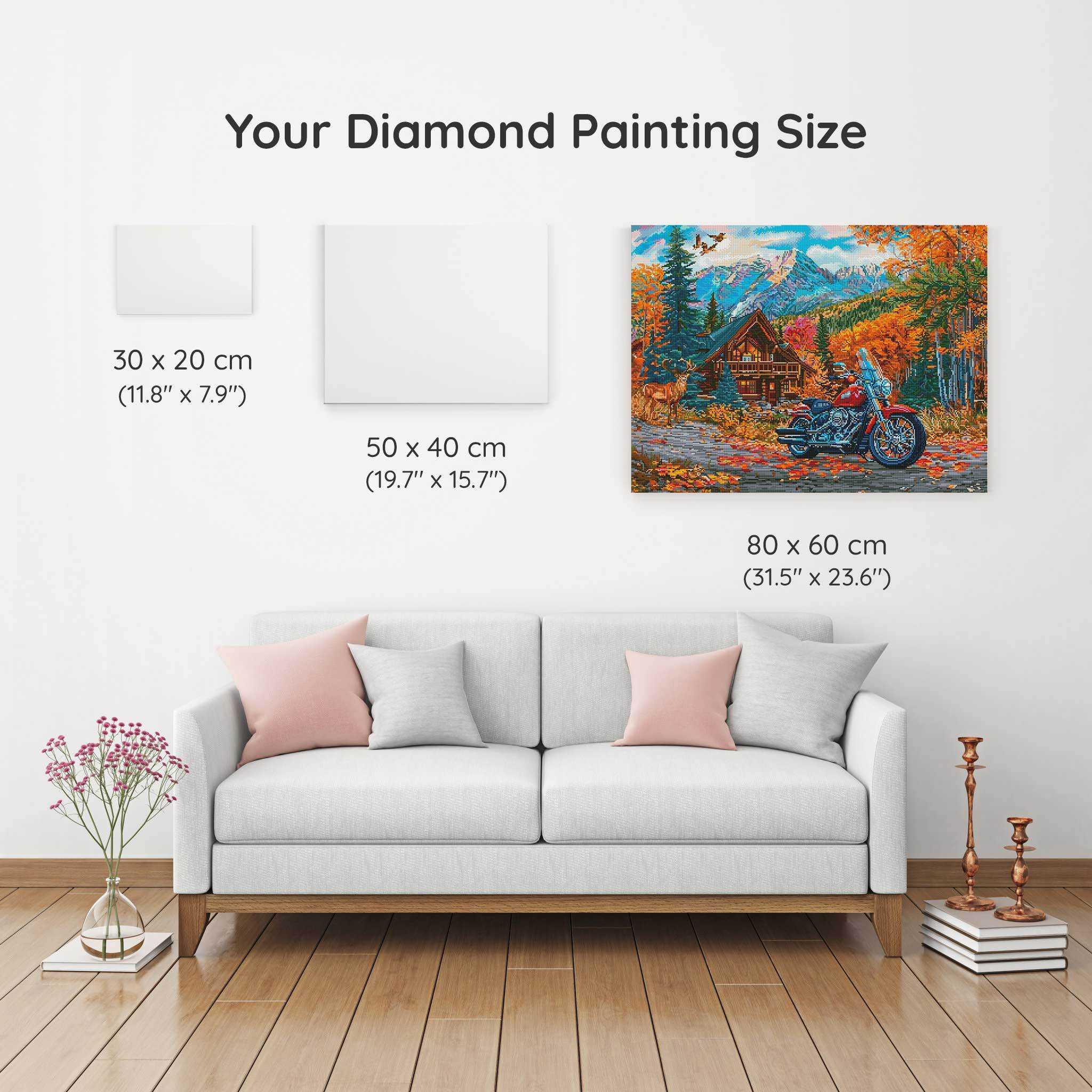 Our canvas dimensions are approximate and may vary by 1–3 cm due to manufacturing processes. This slight variation does not impact the quality or completeness of your diamond painting project.