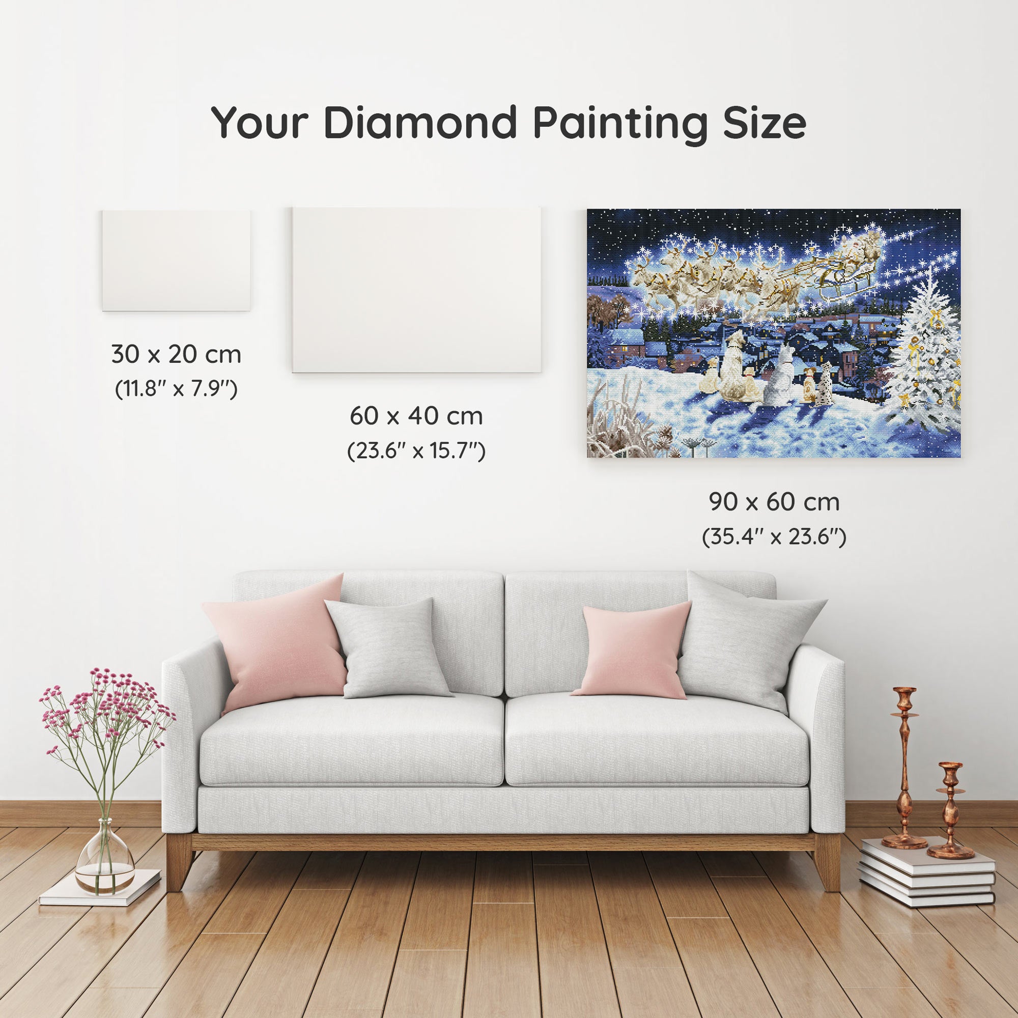 Our canvas dimensions are approximate and may vary by 1–3 cm due to manufacturing processes. This slight variation does not impact the quality or completeness of your diamond painting project.