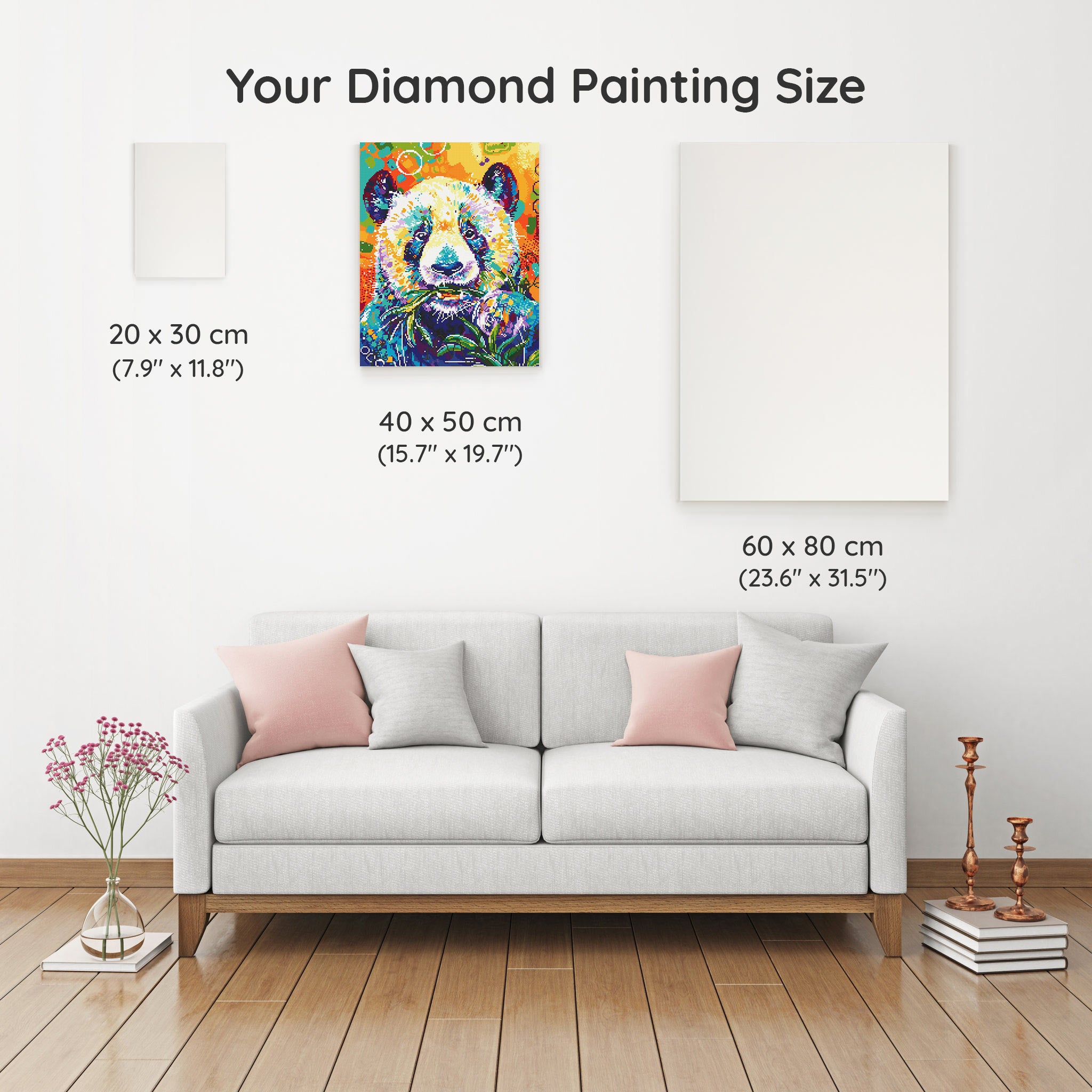 Our canvas dimensions are approximate and may vary by 1–3 cm due to manufacturing processes. This slight variation does not impact the quality or completeness of your diamond painting project.