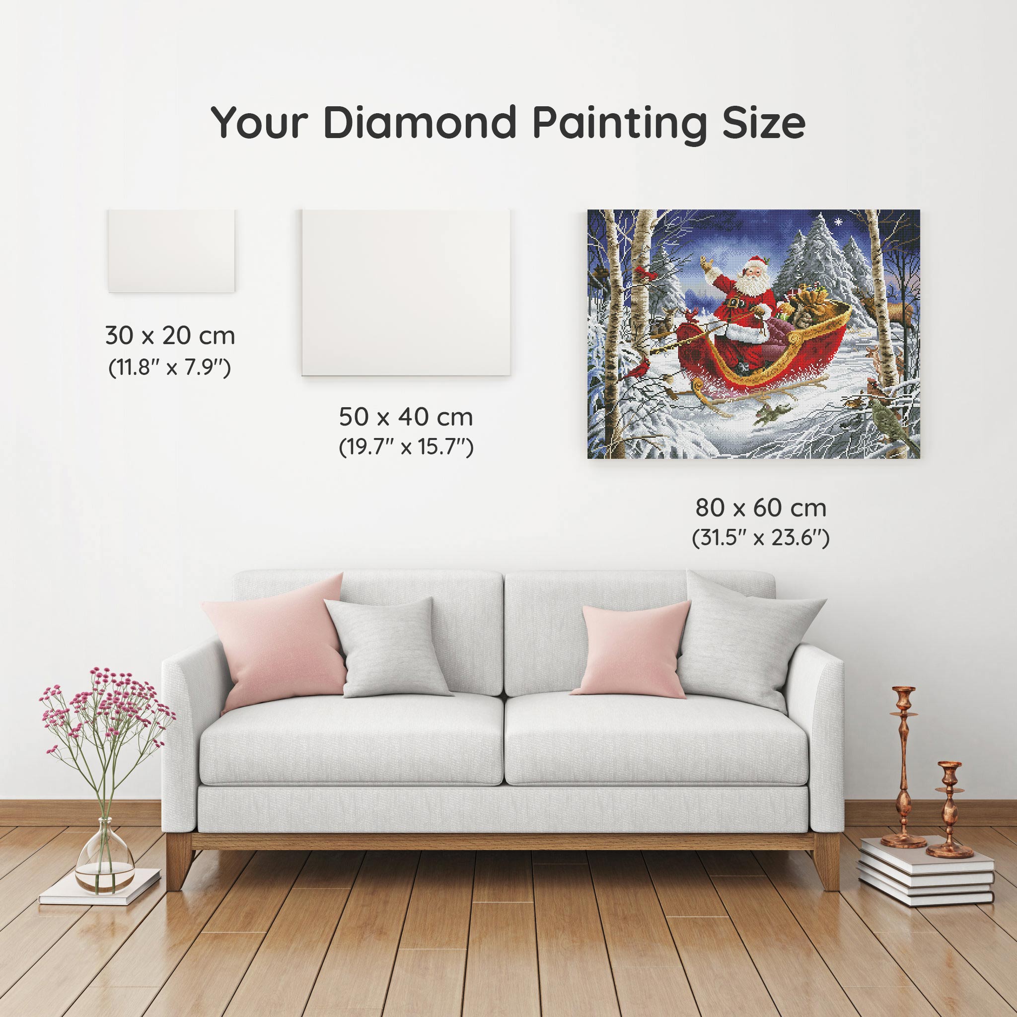 Our canvas dimensions are approximate and may vary by 1–3 cm due to manufacturing processes. This slight variation does not impact the quality or completeness of your diamond painting project.