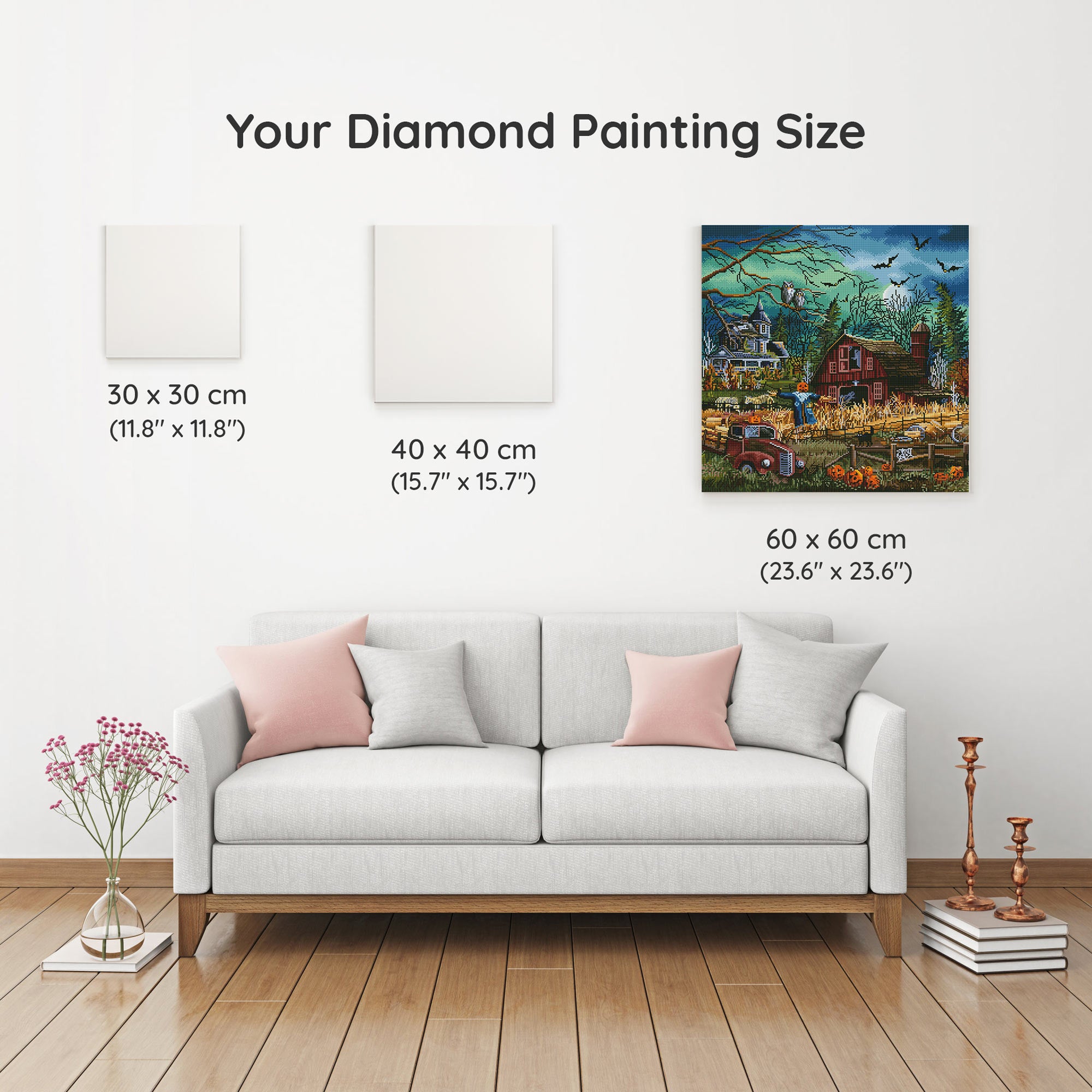 Our canvas dimensions are approximate and may vary by 1–3 cm due to manufacturing processes. This slight variation does not impact the quality or completeness of your diamond painting project.