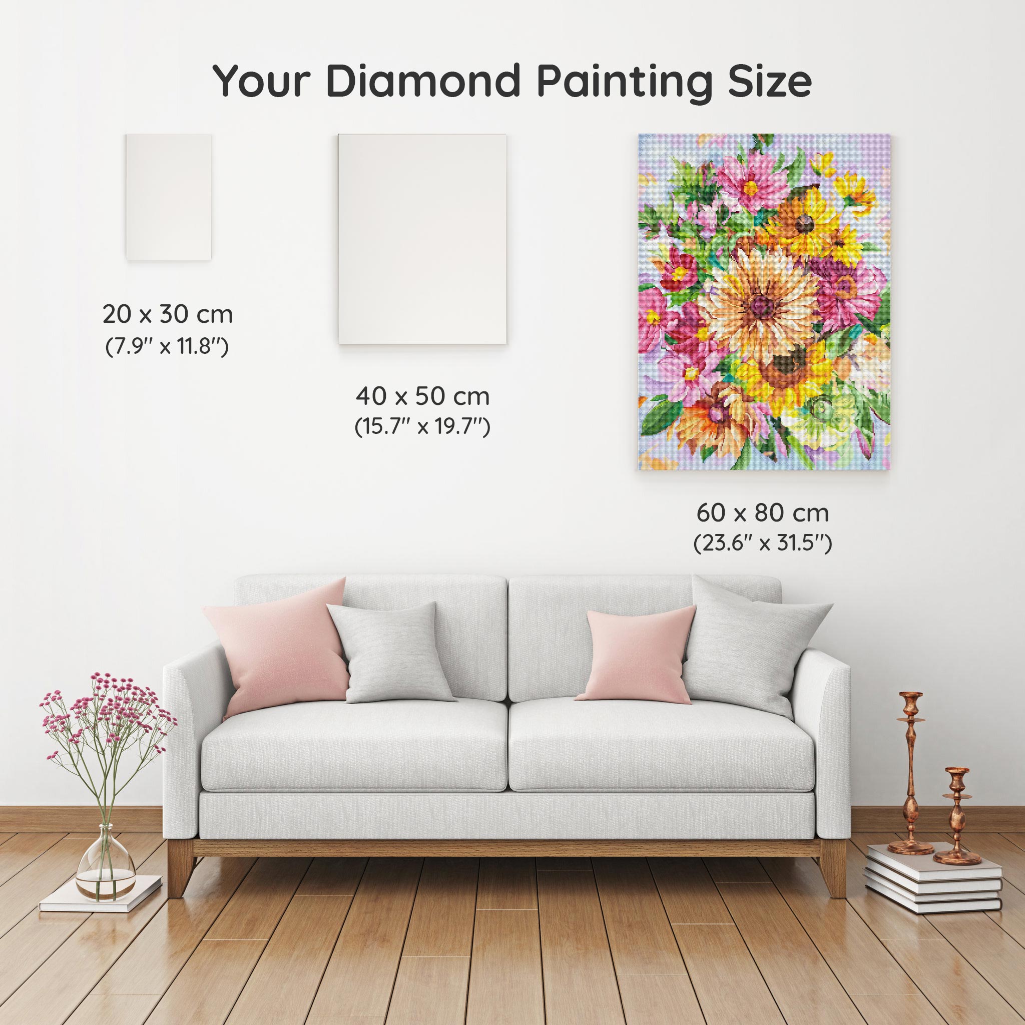 Our canvas dimensions are approximate and may vary by 1–3 cm due to manufacturing processes. This slight variation does not impact the quality or completeness of your diamond painting project.