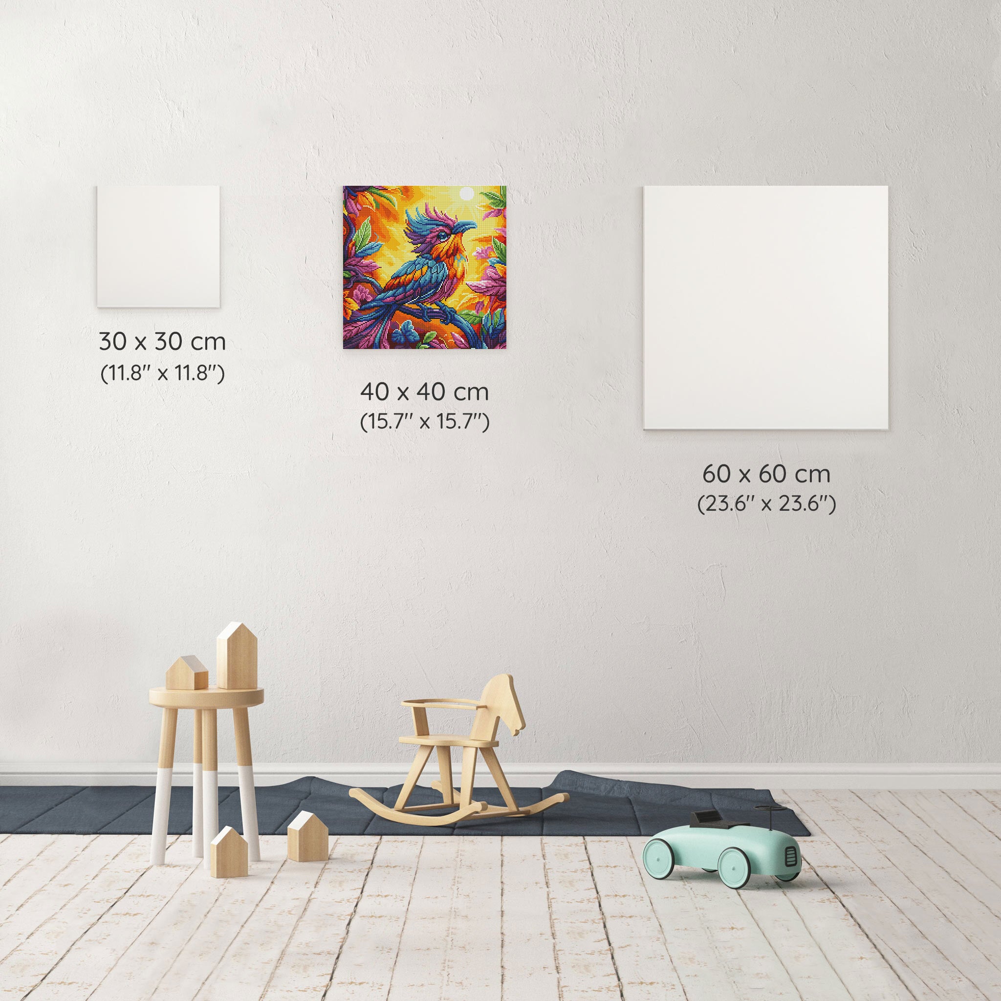 Our canvas dimensions are approximate and may vary by 1–3 cm due to manufacturing processes. This slight variation does not impact the quality or completeness of your diamond painting project.