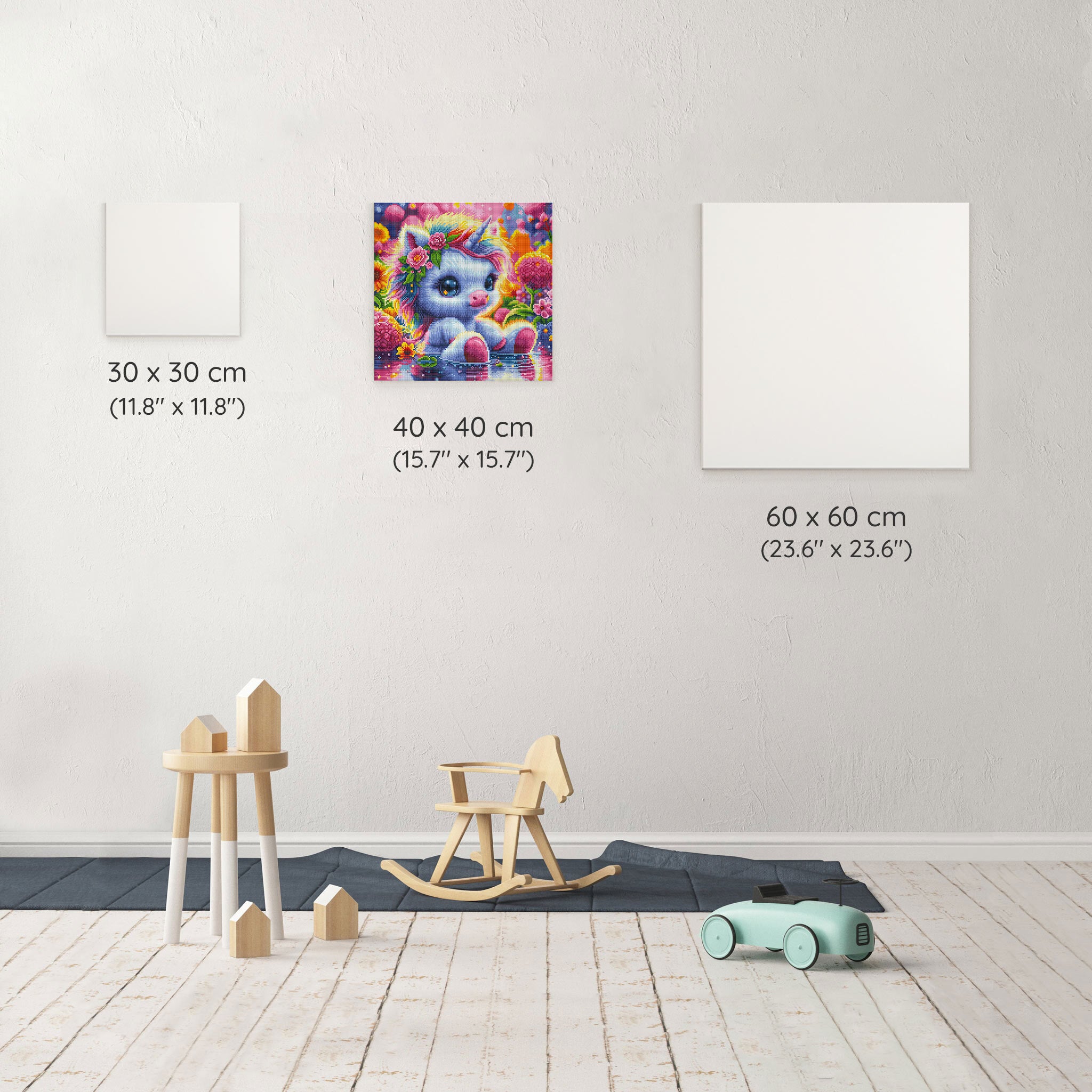Our canvas dimensions are approximate and may vary by 1–3 cm due to manufacturing processes. This slight variation does not impact the quality or completeness of your diamond painting project.