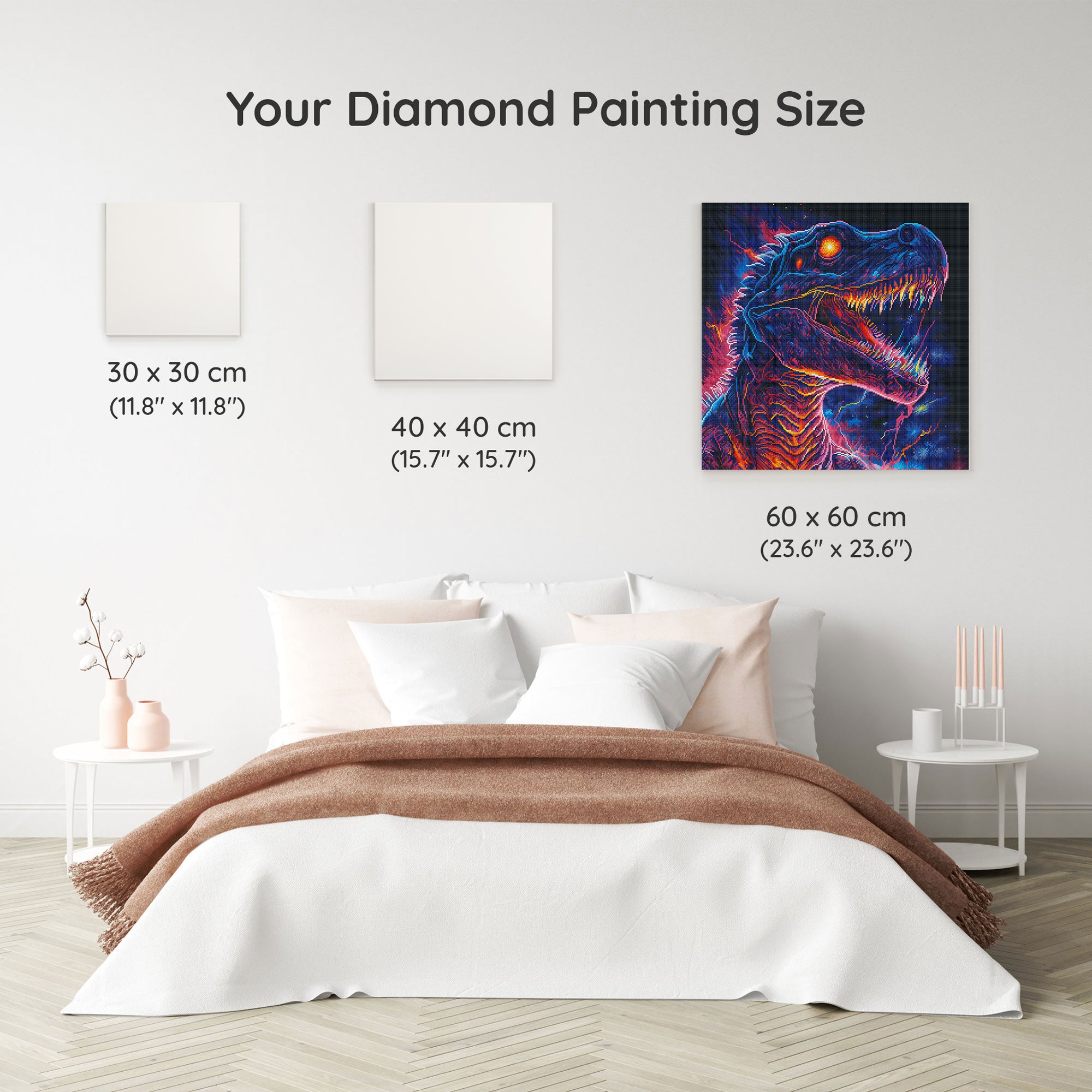 Our canvas dimensions are approximate and may vary by 1–3 cm due to manufacturing processes. This slight variation does not impact the quality or completeness of your diamond painting project.