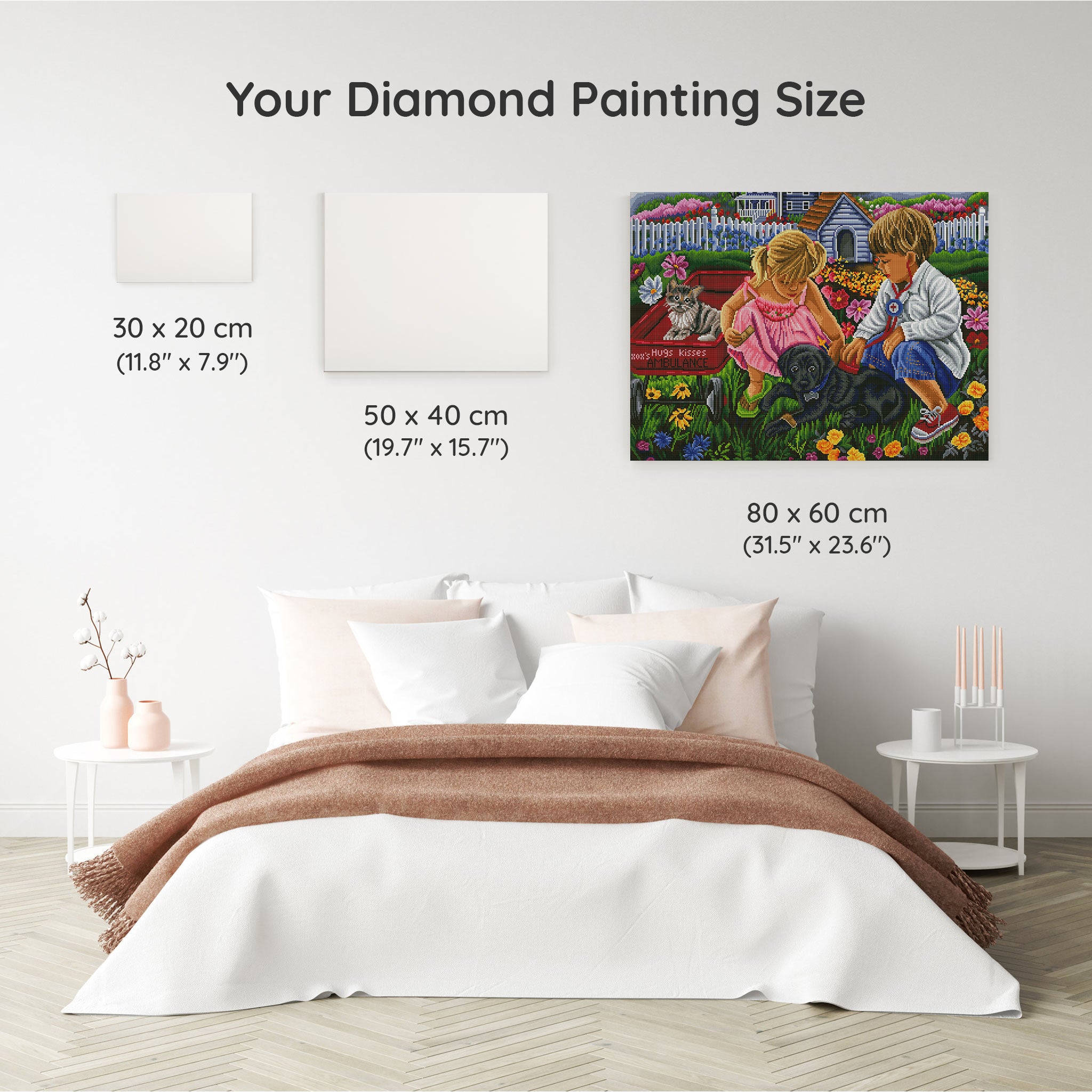 Our canvas dimensions are approximate and may vary by 1–3 cm due to manufacturing processes. This slight variation does not impact the quality or completeness of your diamond painting project.