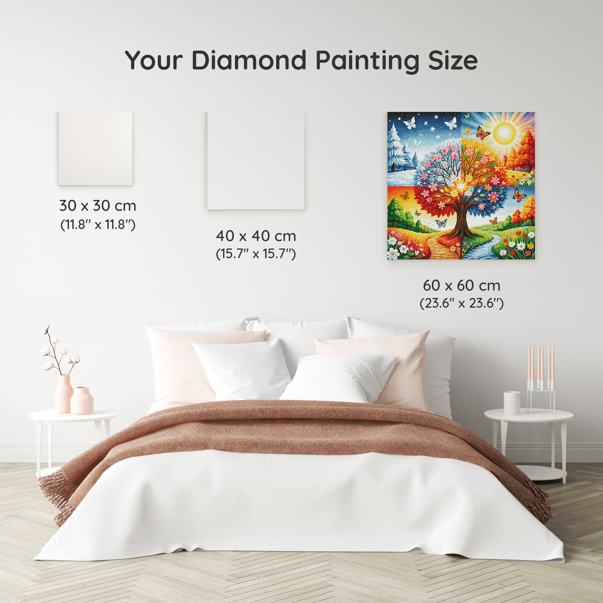 Our canvas dimensions are approximate and may vary by 1–3 cm due to manufacturing processes. This slight variation does not impact the quality or completeness of your diamond painting project.